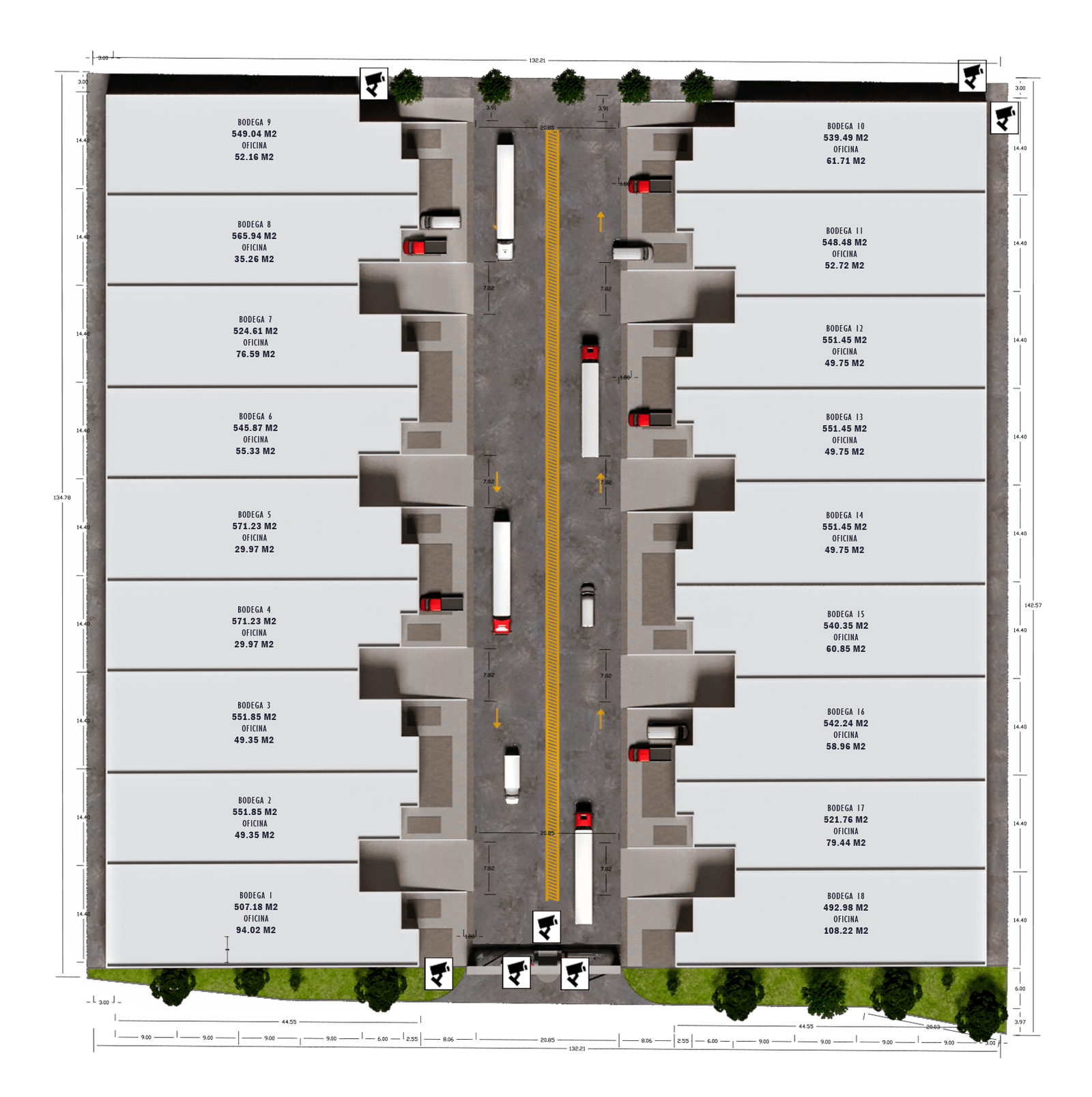 • Piso de concreto MR35 con fibra estructural de 15cm de espesor, resistencia de 250kg/cm2