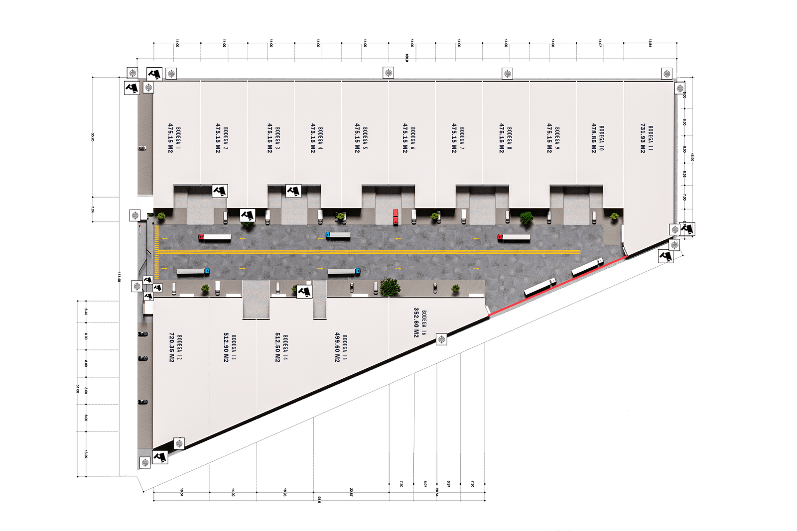 - Piso de concreto MR35 con fibra estructural de 15cm de espesor, resistencia de 250kg/cm2